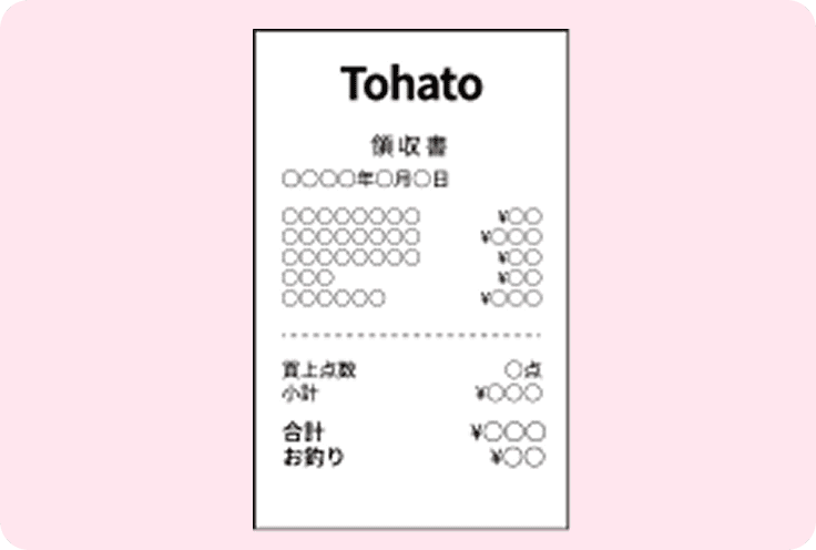 - 長いレシートの場合、対象商品と合計金額が写り込むように、レシートを折り畳んで撮影してください。