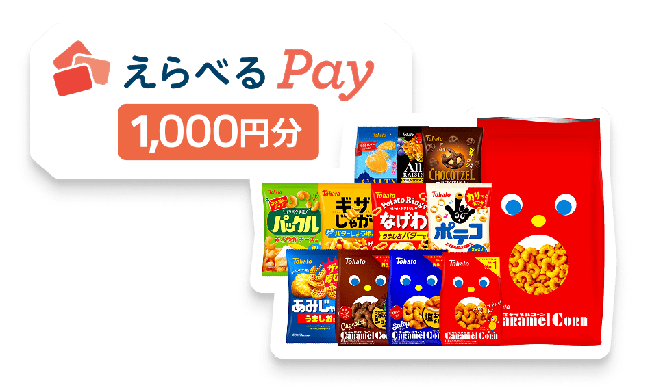 ・本キャンペーンの賞品「えらべるPay 1,000円分」は、選択する交換先によって受け取れる金額が異なる場合があり、1,000円相当とならないことがあります。詳細は「えらべるPay」公式サイトにてご確認ください。